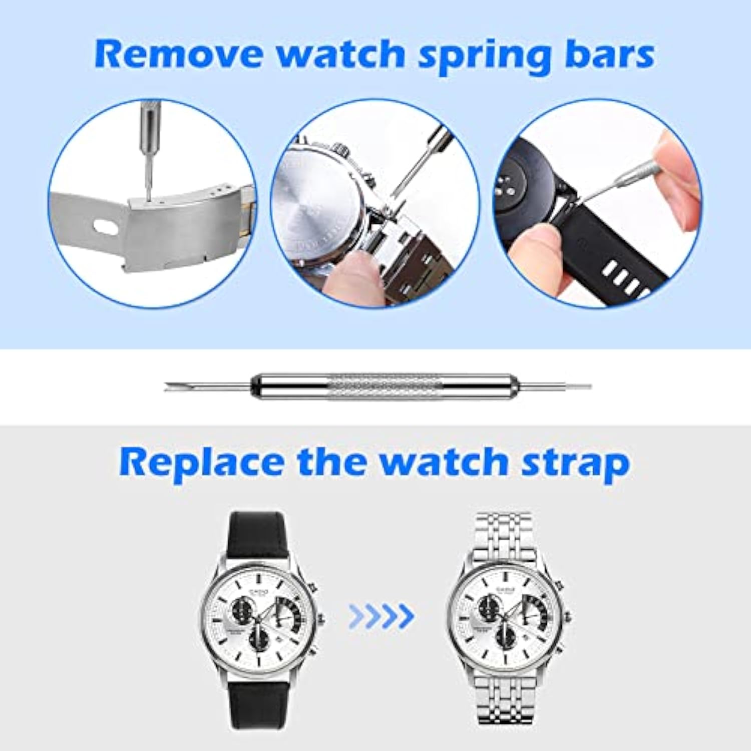 - 【Picture Operation Manual】-- The kit comes with a user manual(in English). The detailed pictures will explain the correct usage for you, so as not to damage your watch due to wrong operation, and help you solve watch problems at home.