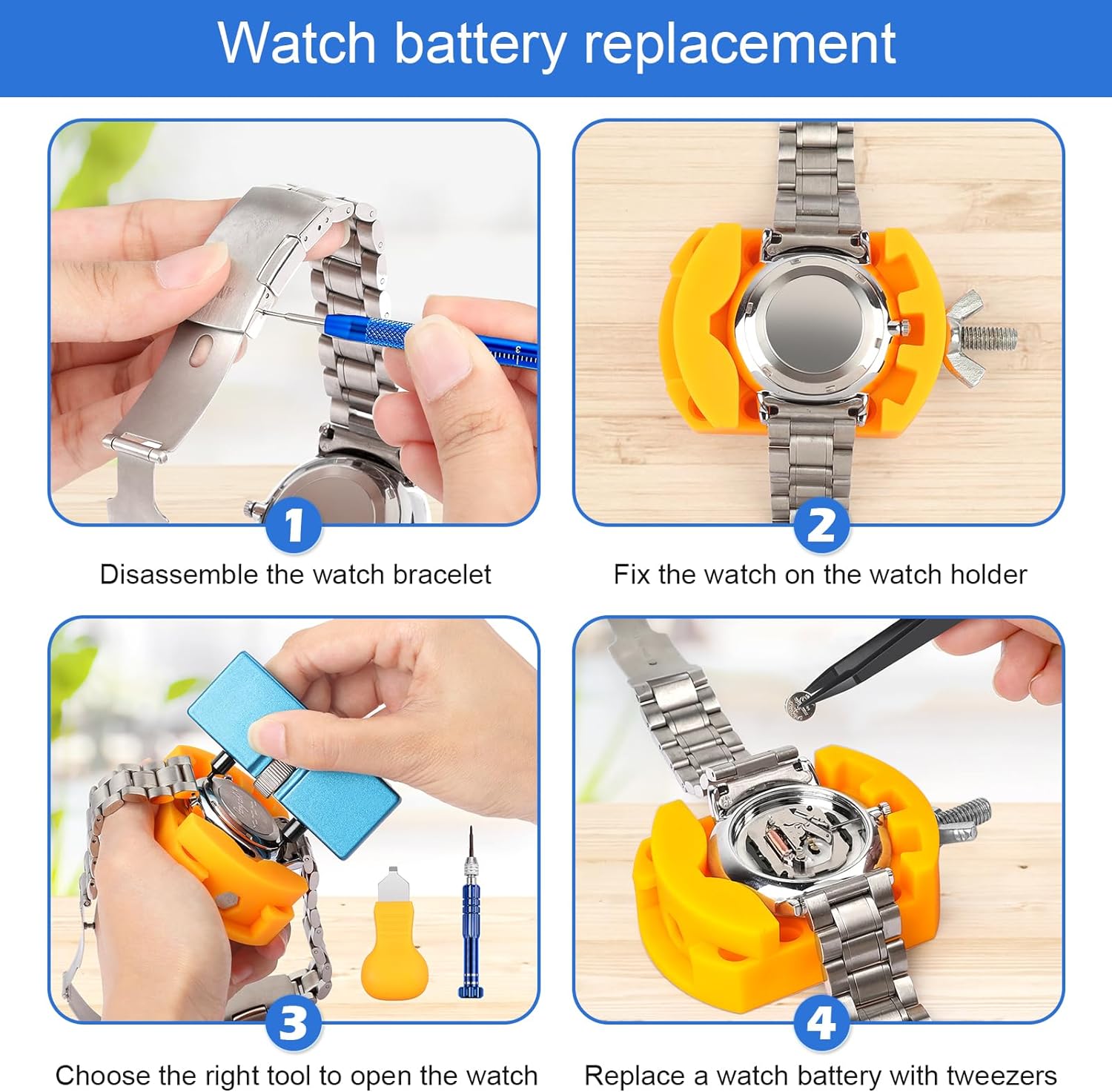 - JOREST Watch Repair Kit, for Watch Battery Replacement & Watch Link Removal and Resizing & Watch Opener, Watch Repair Screwdriver Set, Watch Wrench Back Remover, Watch Cleaning, Spring Bar Tool