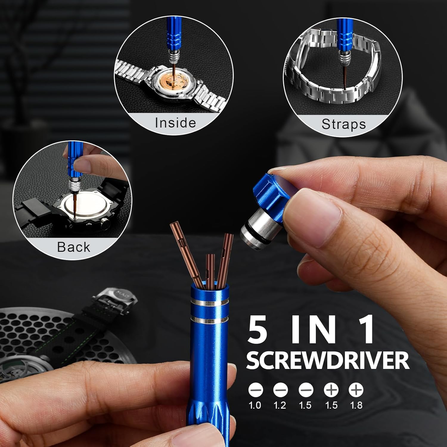 - JOREST Watch Repair Kit + Watch Press Tool, Battery Replacement, Strap Adjustment, Wrench Opening Back Cover, Case Opener/Closer, Link Remover Sizing Bracelet, Screwdriver Band Pin Removal, Spring Bar