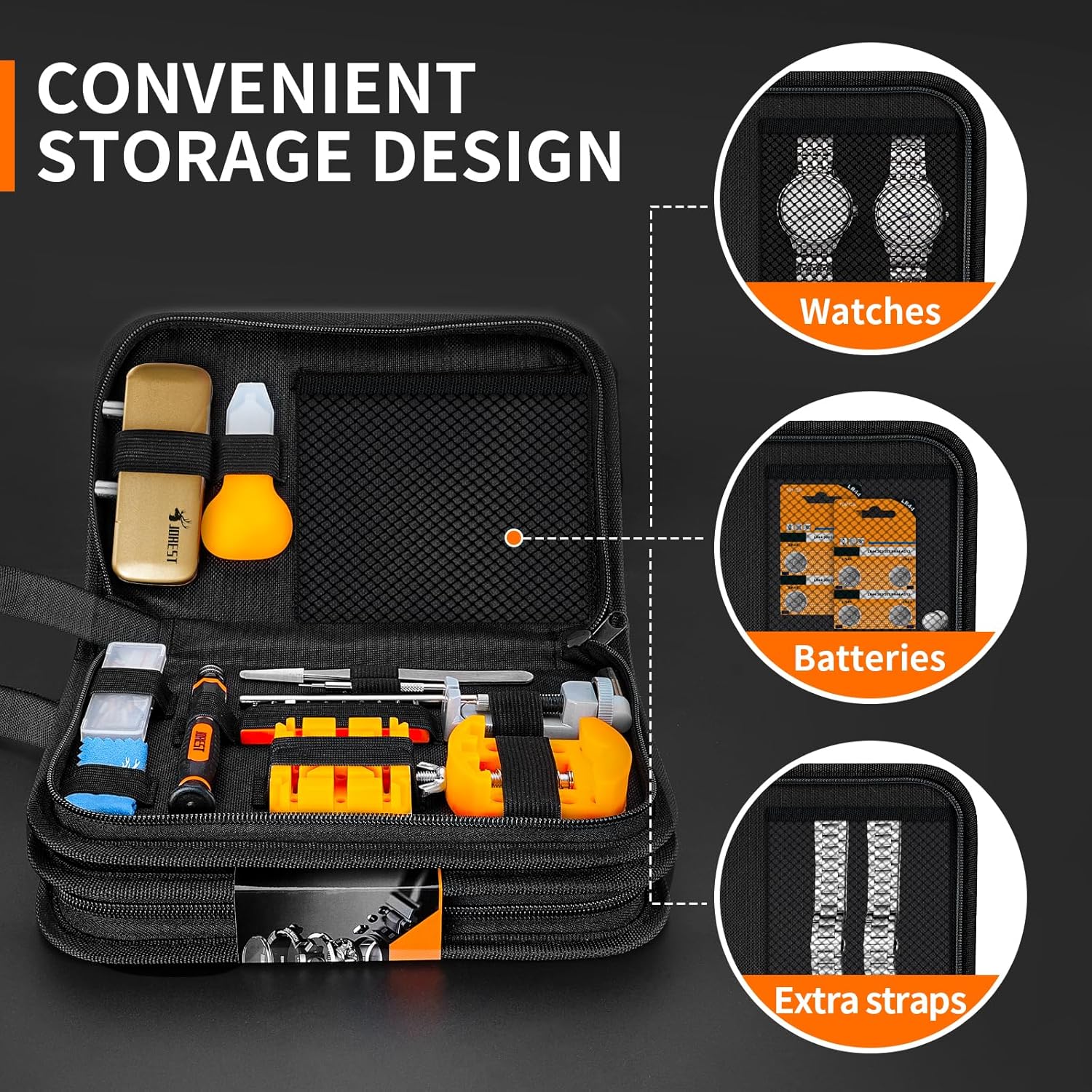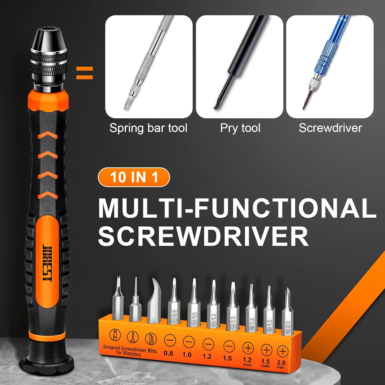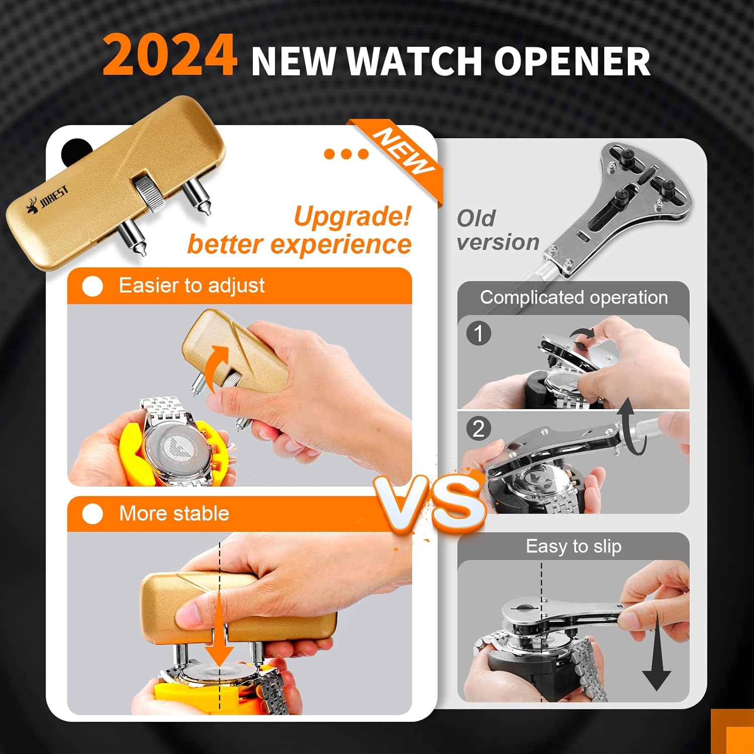 - JOREST Watch Repair Tool Kit, Battery Replacement & Strap Adjustment, Wrench Opening Back Cover, Case Opener, Link Remover, Bracelet Resizing, Band Pin Removal, Screwdriver, Spring Bar